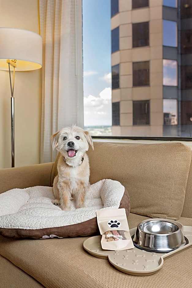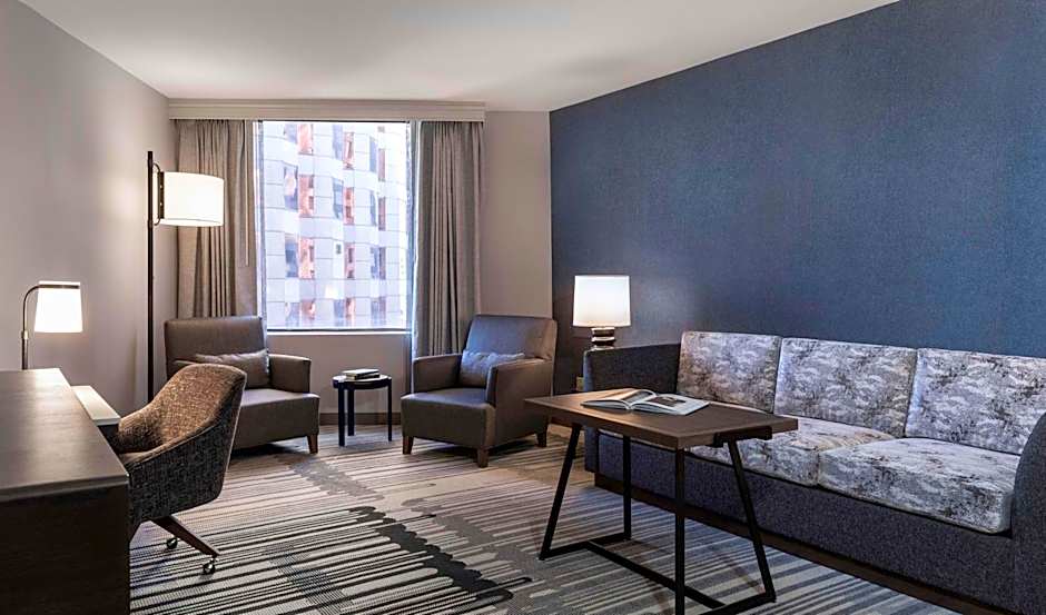 The air-conditioned suite features 1 bedroom and 1 bathroom with a bath or a shower and a hairdryer. The suite has carpeted floors, a seating area with a TV with cable channels, a tea and coffee maker, a wardrobe, as well as a safe deposit box. The unit offers 1 bed.
